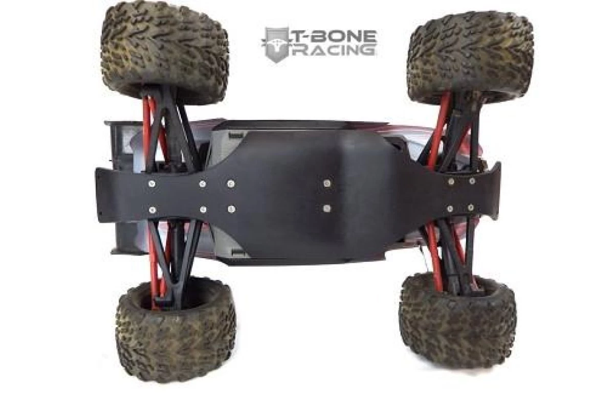 L’accessoire de châssis T-Bone Racing pour le E-Revo 1/16 est en nylon noir de 125 po et pèse 2,5 oz. Il est monté avec 12 vis pour répartir l’impact sur toute la longueur de votre châssis.L’accessoire est livré avec 2 trous avant et arrière pour monter les pare-chocs à boulons optionnels.